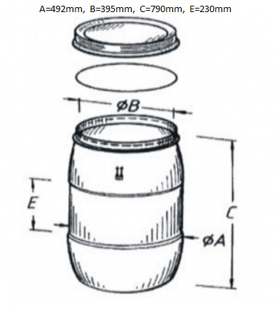 Barel má výšku 810 mm vrátane veka. Priemer otvoru je 395 mm, takže je dostatočne veľký na pohodlné presypanie materiálov aj na zachytávanie dažďovej vody.