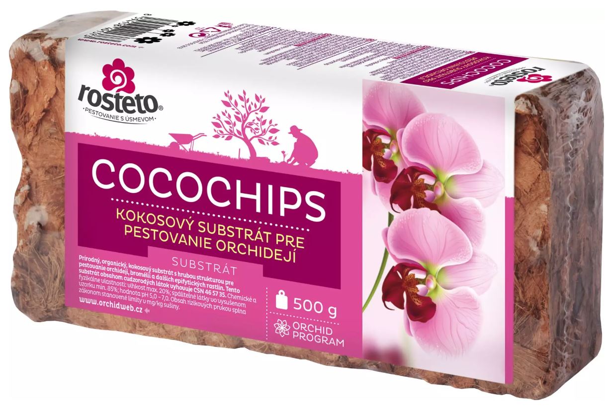 Cocochips rosteto je prírodný, organický, kokosový substrát s hrubou štruktúrou na pestovanie orchideí, bromélií a ďalších epifytických rastlín. Má mimoriadnu schopnosť zadržiavať vodu a rastliny v tomto substráte veľmi prospievajú. Hodnota pH 5,0 – 7,0.