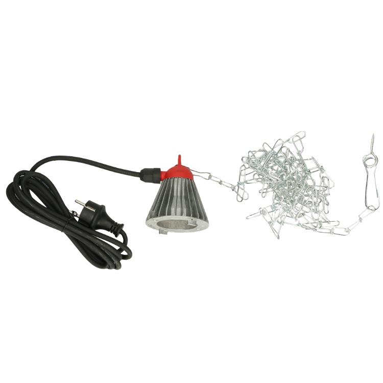 Infralampa s priemerom 30 cm, káblom 2,5 m, bez prepínača výkonu je určená k ohrevu zvierat, predovšetkým k ohrevu hydiny a prasiatok.