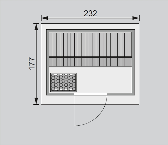- K tomuto modelu sauny je možné dokúpiť úspornú elektrickú pec 3,6 kW, ktorá je opatrená klasickou šnúrou a je možné ju ihneď zapojiť do zásuvky 230 V. Je primárne určená pre fínske sauny malých rozmerov. Nevýhodou je o niečo dlhšia doba vyhrievania sauny, výhodou jednoduché zapojenie bez nutnosti elektrikára. Saunovú pec 3,6 kW dodávame s integrovaným ovládačom priamo na peci alebo s externým ovládačom (pre montáž zvonku sauny).