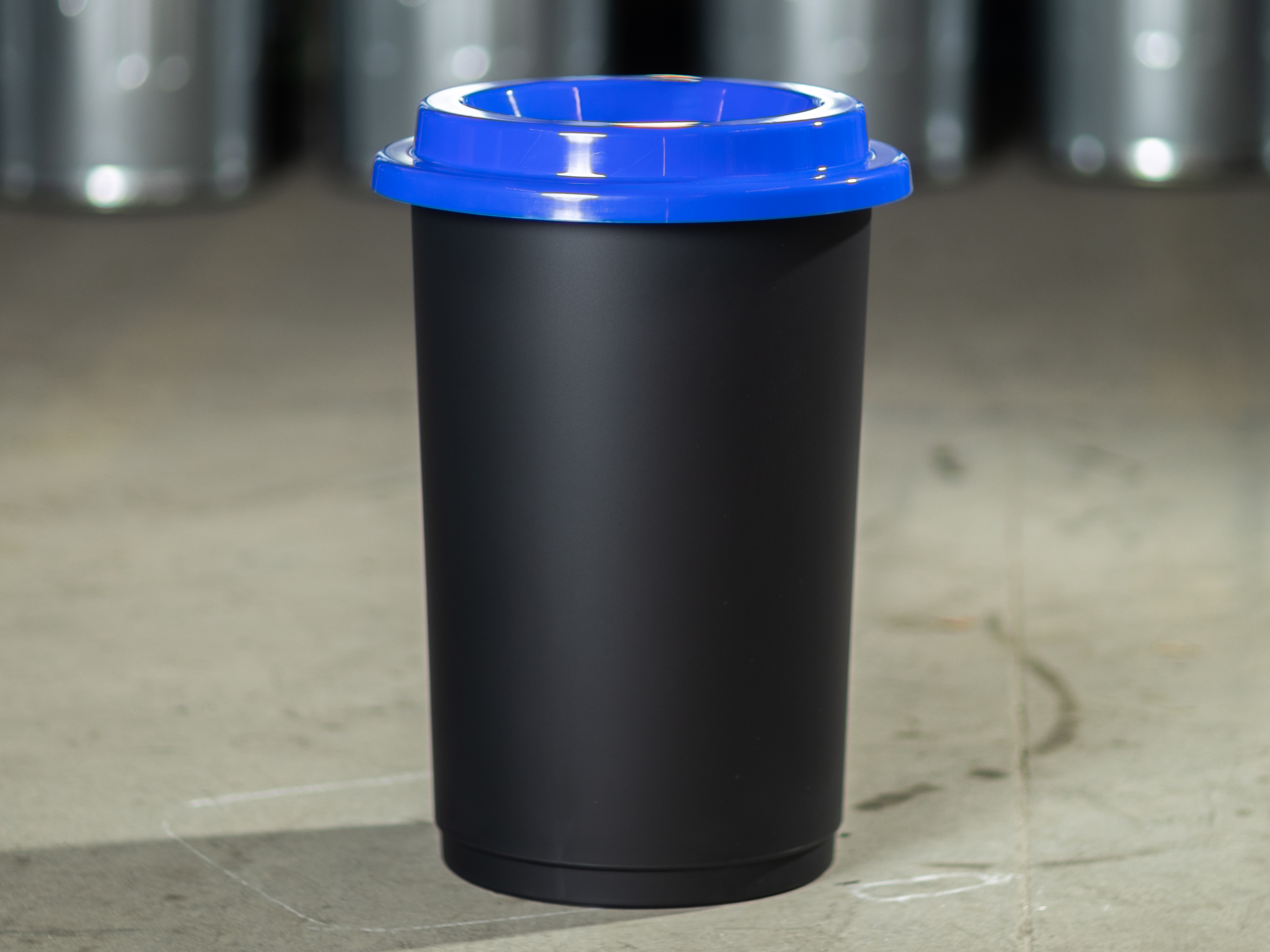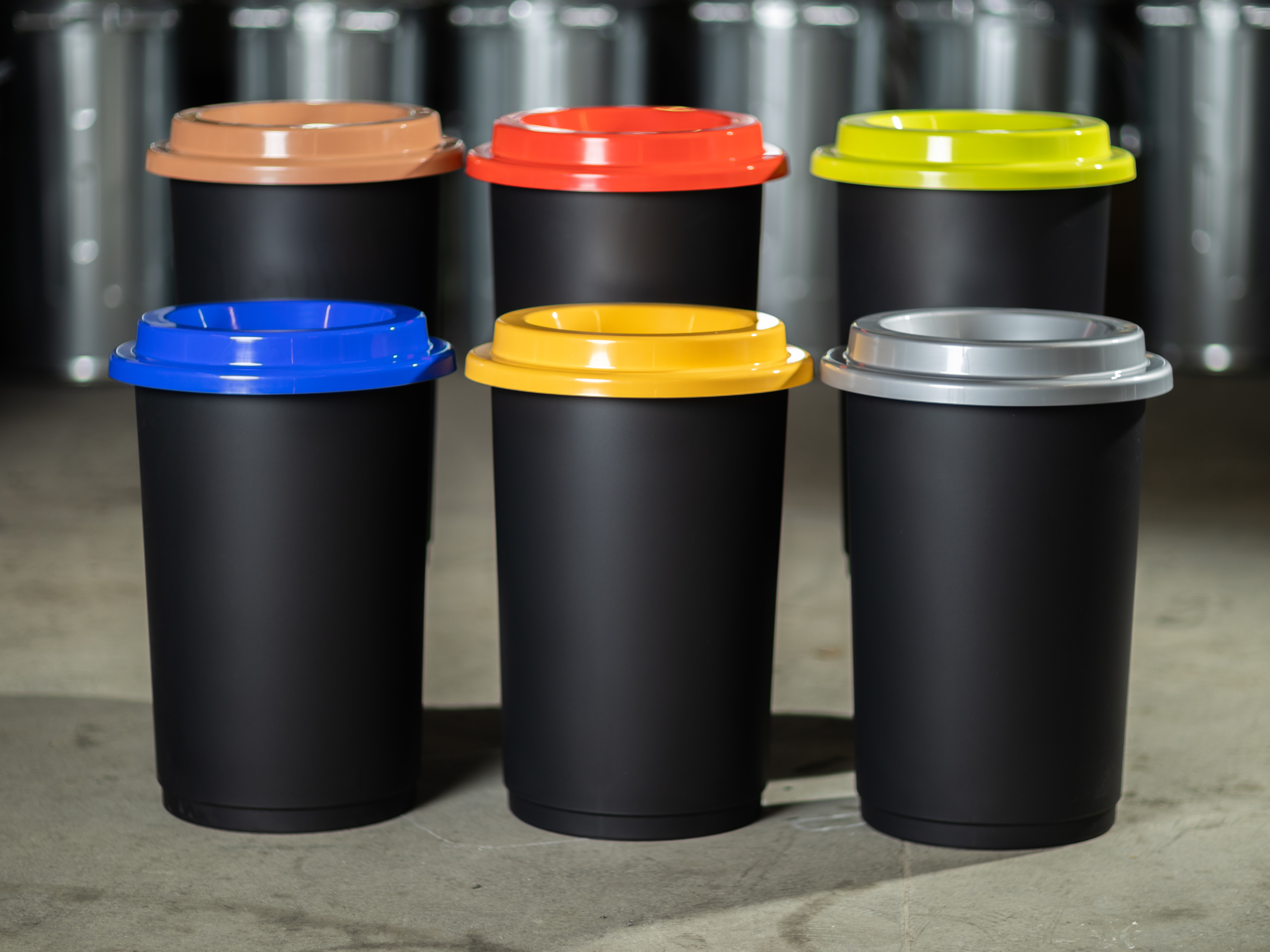 Okrem koša na plasty nájdete v našom eshope v rovnakom dizajne aj smetiaky so zeleným vekom na sklo, so žltým vekom na plasty, so strieborným vekom na univerzálne použitie a s červeným vekom na kovy.