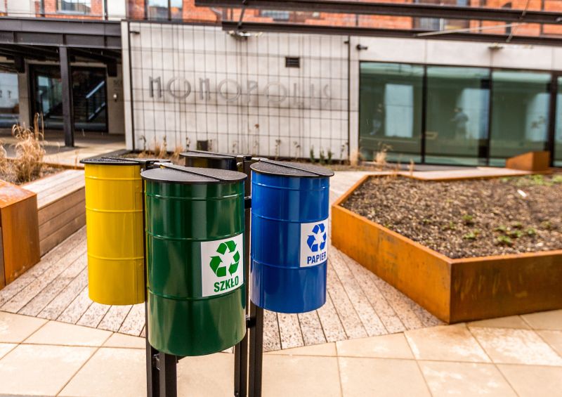 Farby odpadkových košov zodpovedajú farbám prideleným na triedenie odpadu. Kôš má nasledujúce farby: