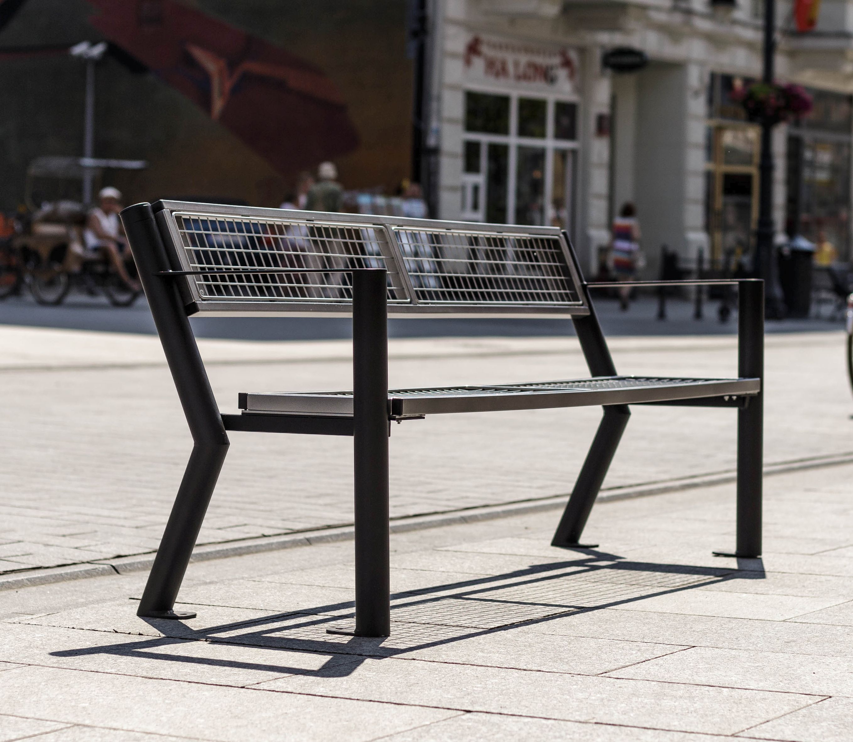 Lavička spĺňa nielen funkčné a bezpečnostné podmienky, no taktiež sa vyznačuje elegantným, oku lahodiacim dizajnom, ktorý sa hodí do oddychových zón, pri športové štadióny, na autobusové či vlakové stanice.