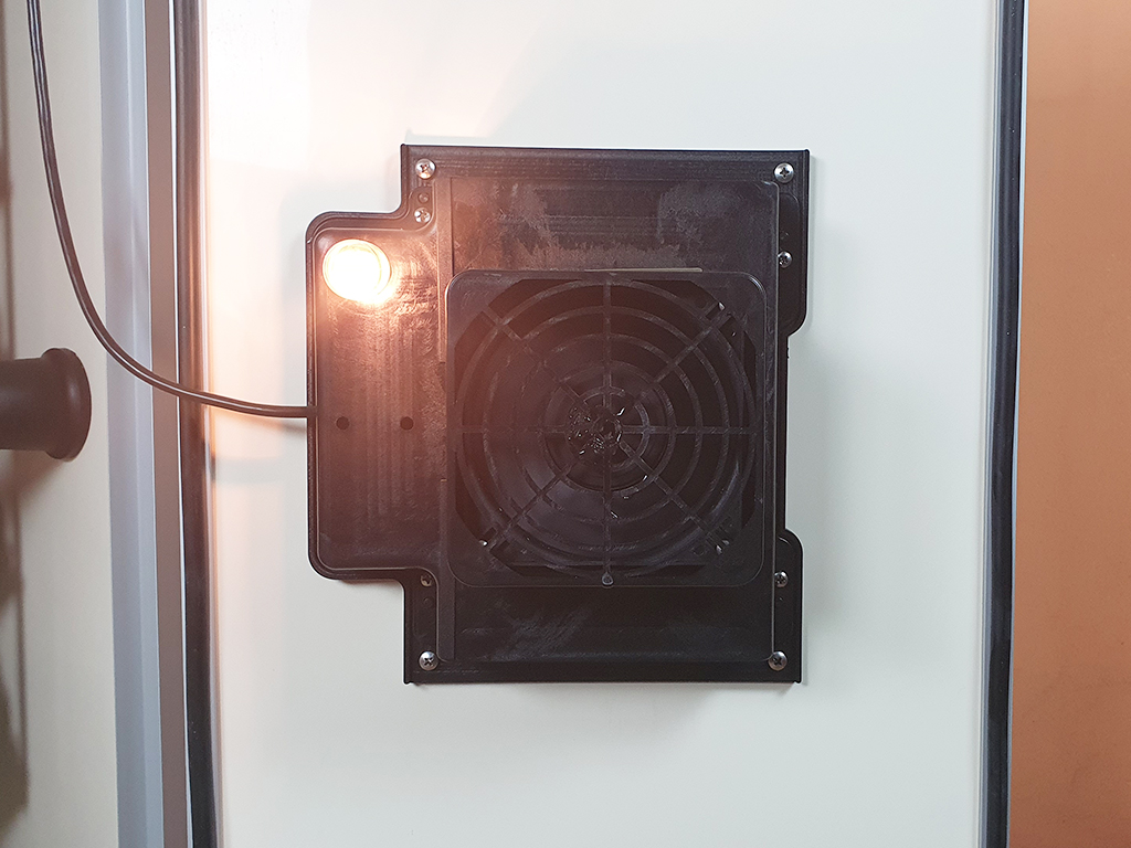 Teplotu je možné nastaviť a prípadne aj ďalej regulovať v rozsahu od 36,6 do 38,3°C s presnosťou na 0,1°C za pomoci ovládacieho panela elektronickej riadiacej jednotky (viď obrázok nižšie). Panel je vybavený digitálnym displejom s ukazovateľom teploty a vlhkosti, ovládacími tlačidlami pre potrebné nastavenia liahne a alarmom, ktorý vyvoláva poplach v prípade prekročenia nastavenej nízkej alebo vysokej hodnoty.