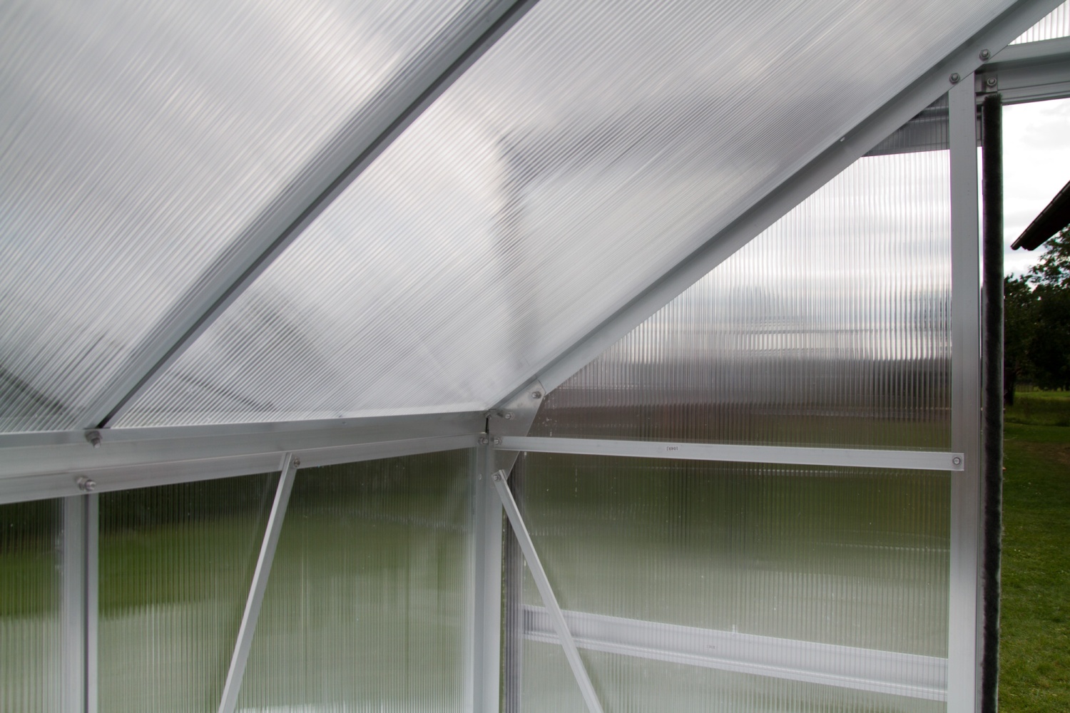 Skleník je vyhotovený z eloxovaných hliníkových profilov a dodávaný s presklením z tepelno-izolačných komôrkových polykarbonátových dosiek s hrúbkou 6 mm (koeficient prestupu tepla K= 3,70 W/m2K (sklo 4 mm iba 5,80 W/m2K) => čím menšie číslo, tým väčšia tepelná izolácia).