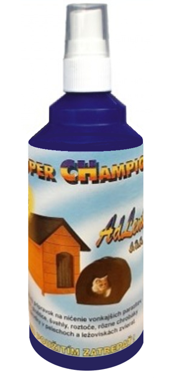 Sú to hlavne búdy, pelechy, hracie deky a klietky určené na ich prenos. Raz až dvakrát týždenne je potrebné ich dôkladne vyčistiť a vystriekať ich prípravkom Super Champion.