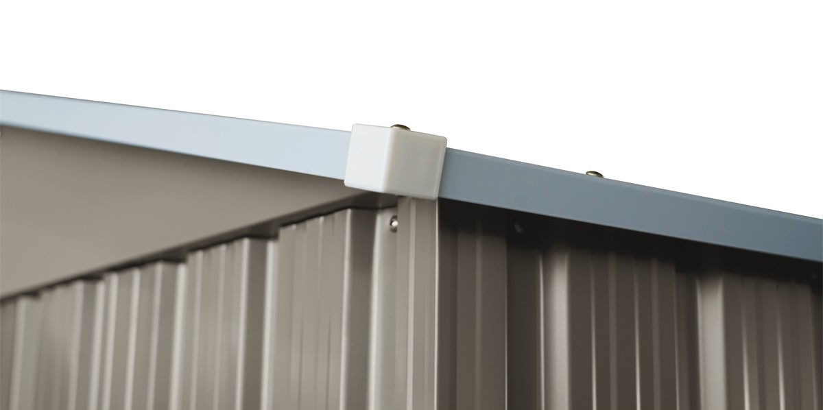Domček je vyrobený z profilovaných oceľových plechov s antikoróznou úpravou. Rám aj steny sú žiarovo zinkované a následne ošetrené kvalitným práškovým lakom, ktorý zaisťuje dlhú životnosť. Výstuhy v stenách a streche zabezpečujú vyššiu pevnosť a odolnosť voči vetru či snehu.