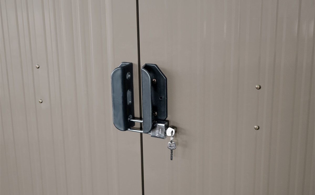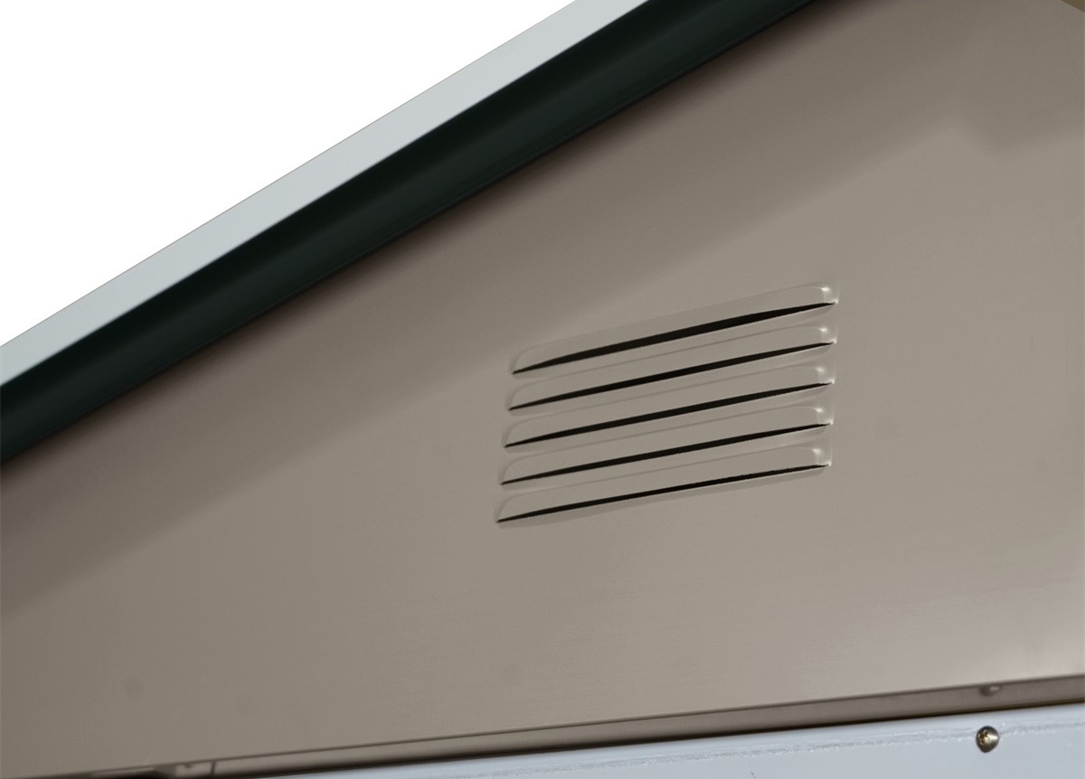 Dvojkrídlové posuvné dvere (VxŠ: 170 × 105 cm) s madlami umožňujú pohodlný vstup a manipuláciu aj s väčšími predmetmi. Dvere sú uzamykateľné, čo zvyšuje bezpečnosť uložených vecí. O správnu cirkuláciu vzduchu a zamedzenie kondenzácie sa starajú štyri vetracie otvory.