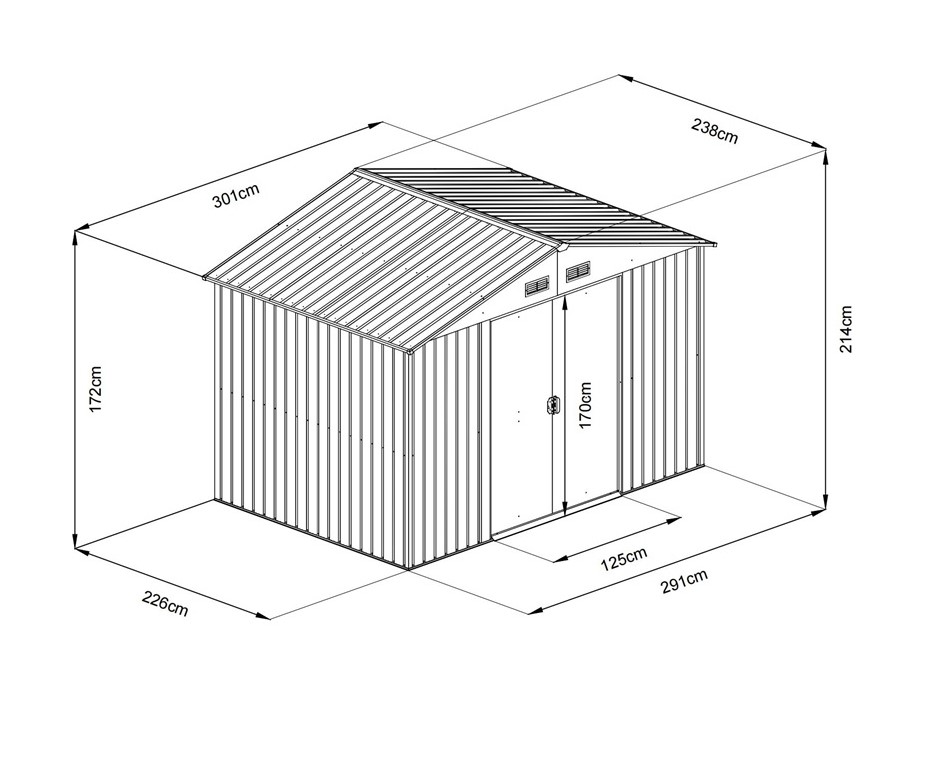 Dvojkrídlové posuvné dvere (VxŠ: 170 × 125 cm) s madlami umožňujú pohodlný vstup a manipuláciu aj s väčšími predmetmi. Dvere sú uzamykateľné, čo zvyšuje bezpečnosť uložených vecí. O správnu cirkuláciu vzduchu a zamedzenie kondenzácie sa starajú štyri vetracie otvory.