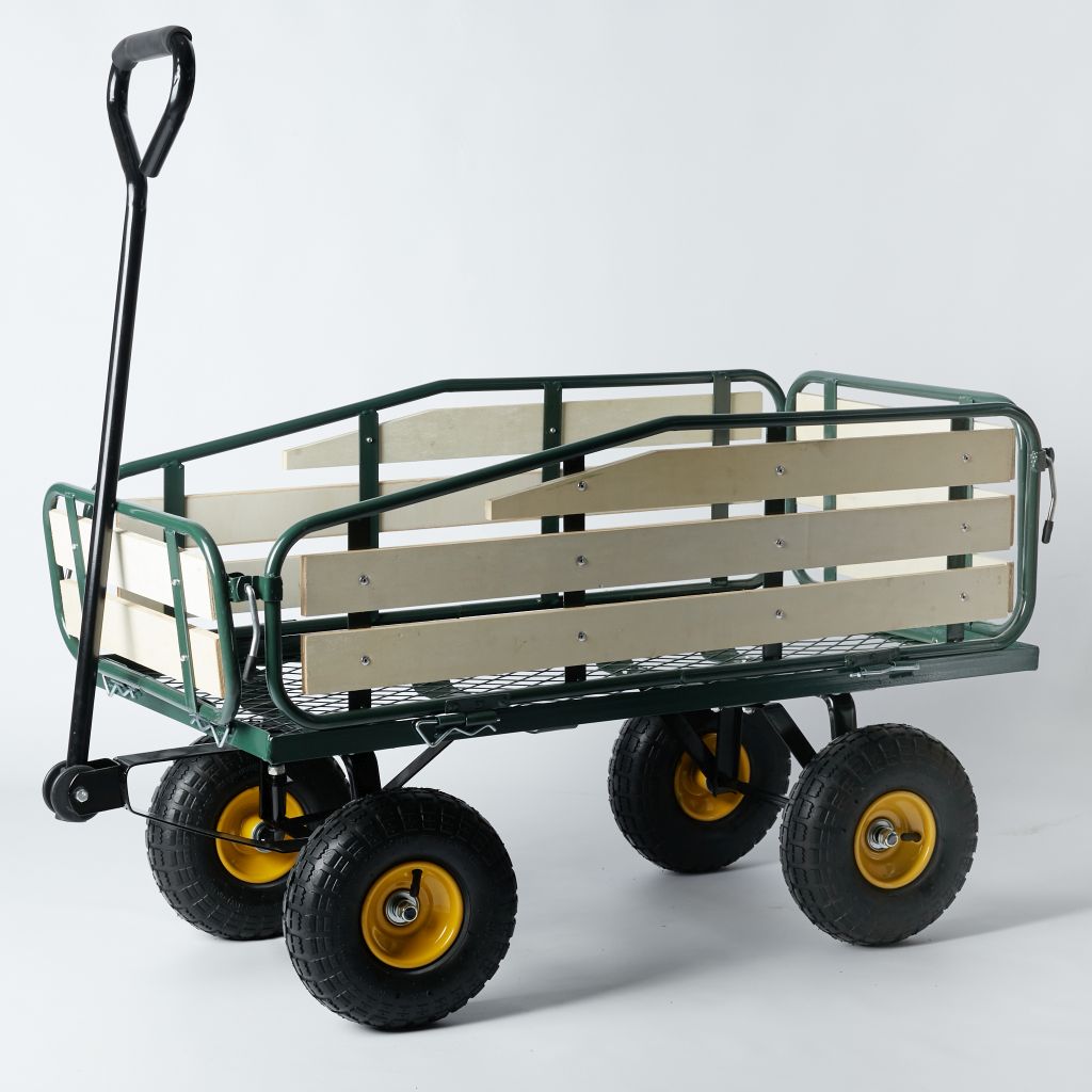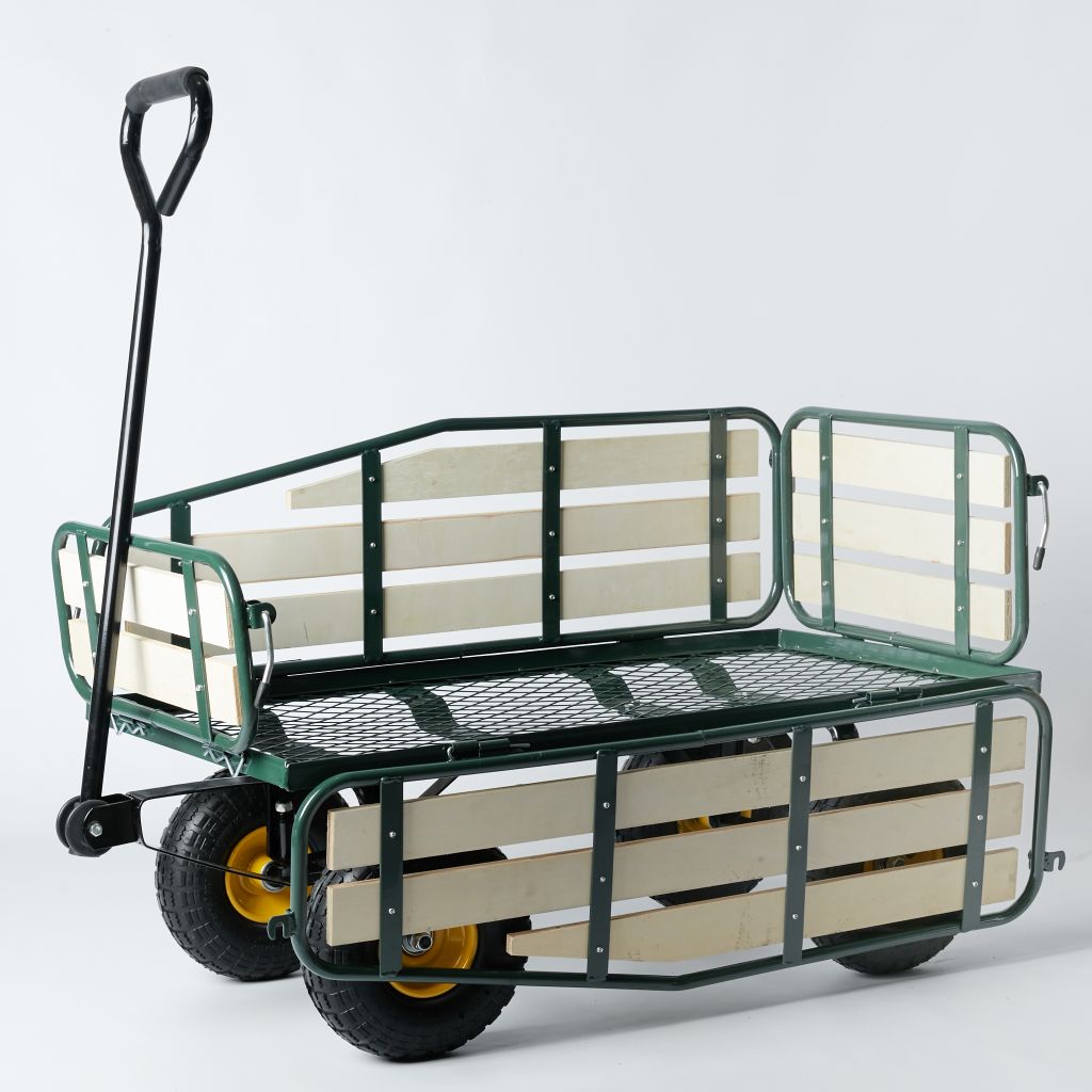 Na vozíku taktiež oceníte drevené sklápacie bočnice, ktoré sú vyrobené z píniovej drevenej preglejky (WPC). Tá je odolná voči plesniam.