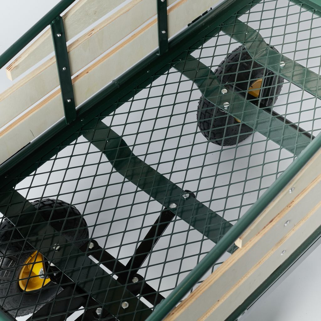Vozík je vyrobený z kvalitnej čiernej lakovanej oceli, ktorá je odolná voči poveternostným vplyvom a taktiež hrdzaveniu. Vďaka pevnosti materiálu odvezie vozík náklad až do nosnosti 135 kg.