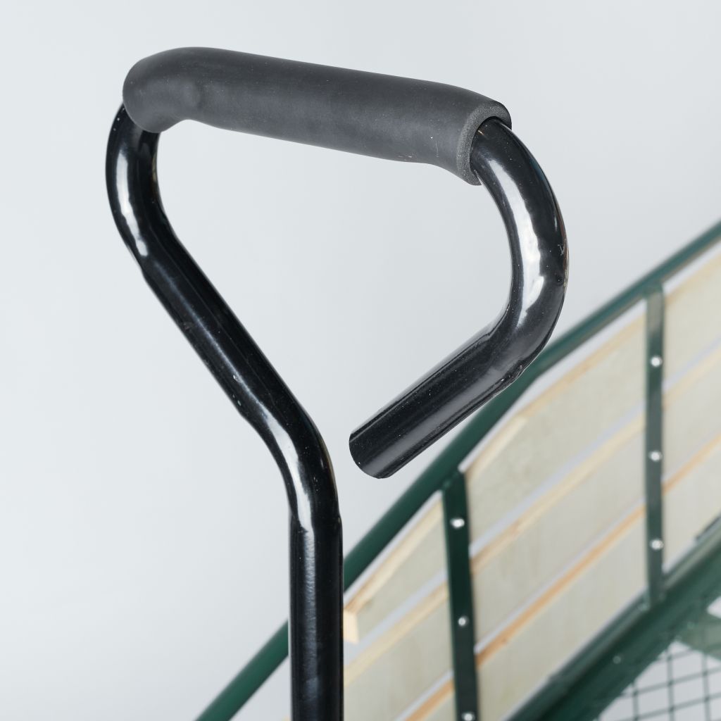Medzi prednosti vozíka patrí najmä veľká a pohodlná kovová rukovať s dĺžkou 75 cm, ktorá uľahčuje manipuláciu aj keď je vozík plne naložený.